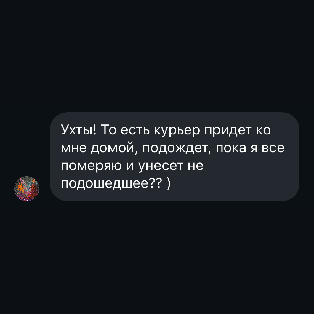 Ухты! То есть курьер придет ко мне домой, подождет, пока я все померяю и унесет не подошедшее?? )